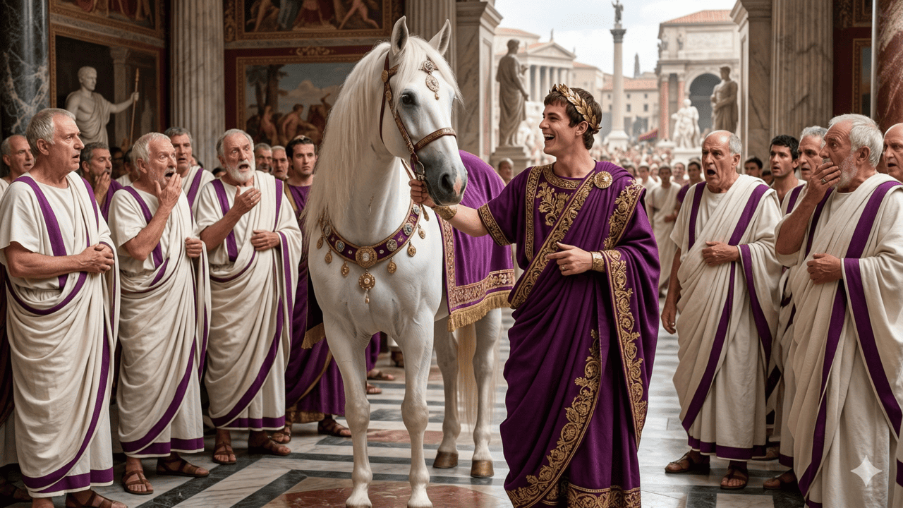 - Gestos simbólicos e exagerados: Calígula teria cercado o cavalo de luxos e feito declarações públicas para humilhar o Senado.
