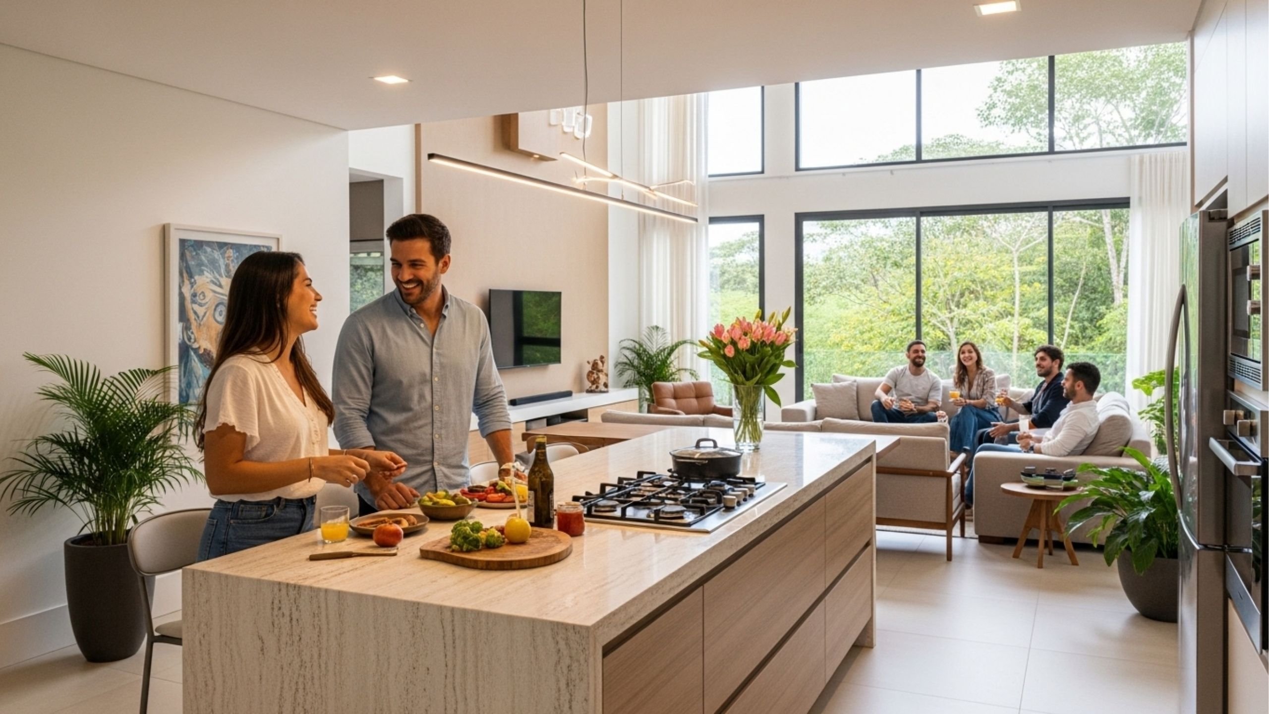 Além de melhorar a circulação e ampliar visualmente os ambientes, a cozinha aberta também valoriza a iluminação natural e cria um espaço mais convidativo para receber amigos e familiares. Essa transformação acompanha o estilo de vida moderno, que prioriza convivência e praticidade.