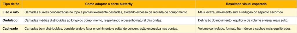 Para cabelos maduros, a adaptação do butterfly passa pelo formato de rosto, tipo de fio e nível de manutenção desejado. Muitas vezes, o profissional sugere versões na altura dos ombros ou um pouco abaixo, mantendo a praticidade no dia a dia.