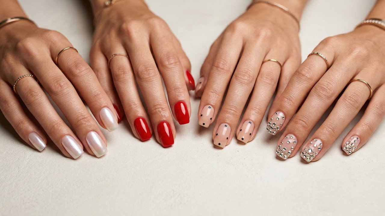 As previsões apontam quatro grandes destaques: unhas com efeito pérola, desenhos de bolinhas, esmaltação vermelha em diferentes tons e nail art com aplicações que lembram joias. Cada proposta conversa com um estilo de visual, indo do discreto e elegante ao marcante e cheio de detalhes.