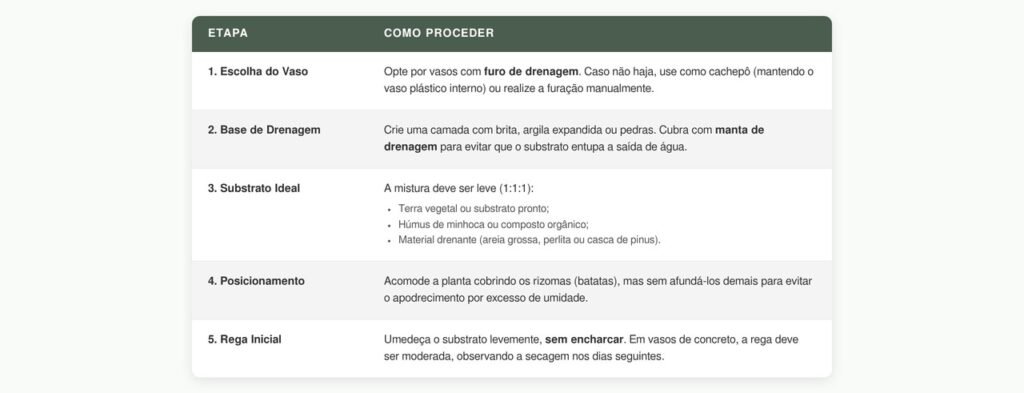 O passo a passo abaixo ajuda a reduzir o risco de estagnação e de apodrecimento das raízes, garantindo um ambiente mais estável para o desenvolvimento da planta.