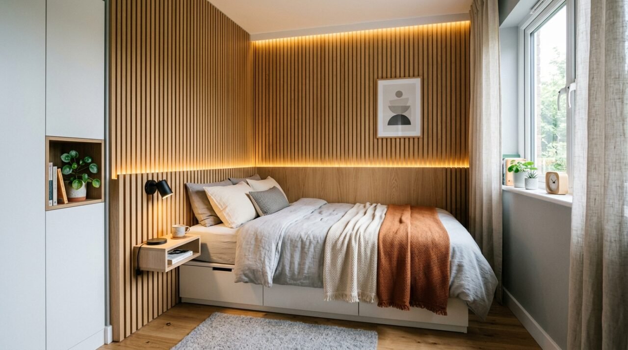 Por que o painel ripado é a escolha ideal para quartos pequenos?
