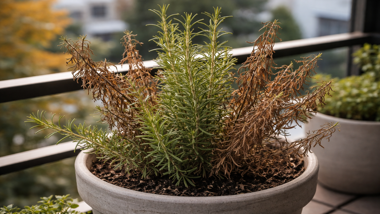 O alecrim marrom em março significa que a planta morreu