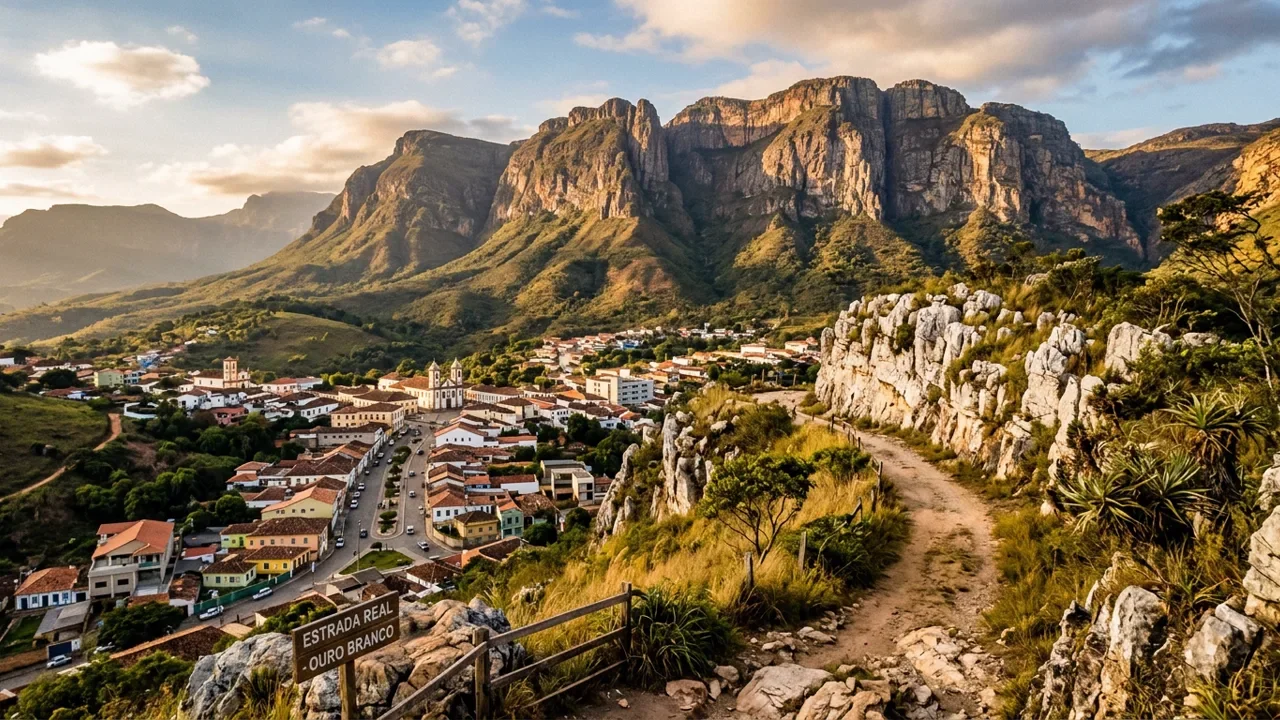 Ouro Branco guarda barroco de Ataíde, mirantes acima de 1.500 metros e o silêncio raro de uma cidade histórica que ainda não foi tomada pelas multidões. A economia diversificada sustenta índices de desenvolvimento que envergonham municípios muito maiores.