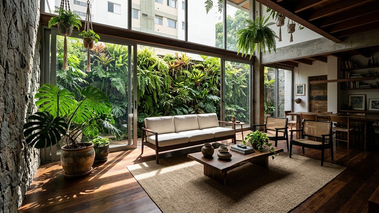Mesmo em imóveis compactos, o design biofílico em casa pode ser incorporado com soluções simples. Poucas plantas bem posicionadas costumam ser mais eficientes do que muitos vasos sem planejamento, e jardins verticais aproveitam melhor paredes e varandas.