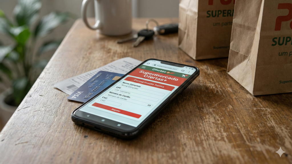 Alguns sinais costumam indicar que uma mensagem ligada a um supermercado é fraudulenta, como o uso de urgência (“só hoje”, “últimas horas”) para pressionar decisões rápidas. Outro indicativo comum são erros de ortografia, construções estranhas de frases ou termos que não combinam com a comunicação oficial da rede citada.