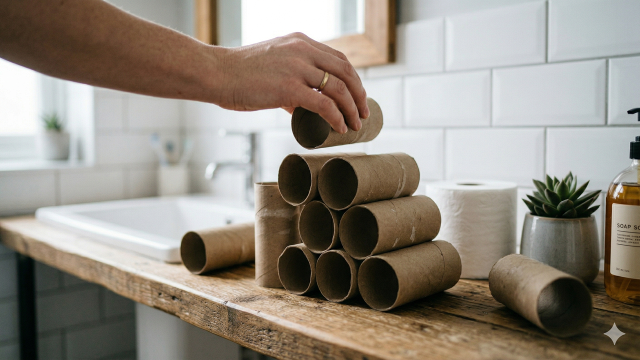 O mesmo princípio de reaproveitamento de tubos de papel higiênico pode ser aplicado na organização de lápis, canetas, pincéis, fios de bordado, linhas de costura e pequenos acessórios. Agrupados em caixas ou colados em placas de papelão firmes, esses cilindros formam módulos personalizados que se adaptam ao espaço e à sua rotina.