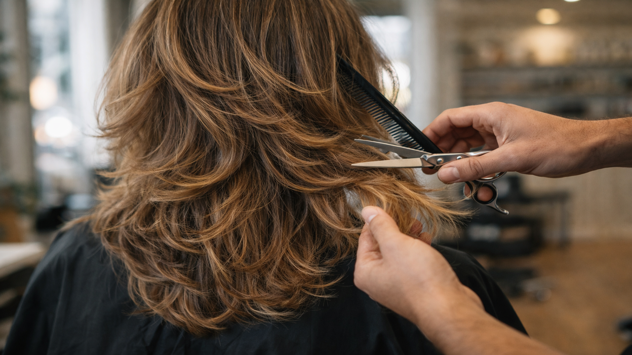 - Uso de tesoura ou navalha para camadas suaves, sem linhas muito marcadas.