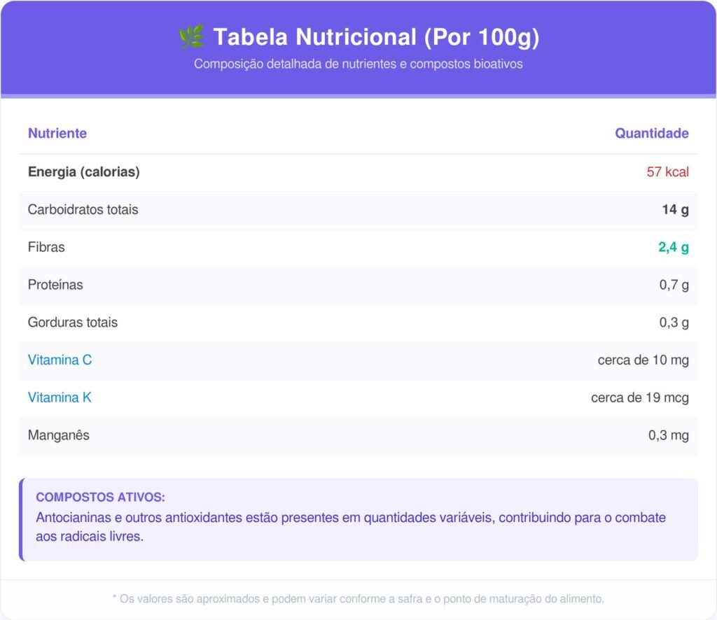 De forma geral, o mirtilo é apontado como uma fonte relevante de vitaminas, minerais e fitoquímicos. A presença desses nutrientes, combinada a um baixo teor calórico, faz com que a fruta seja citada em orientações de alimentação equilibrada, aliando potencial benefício para o cérebro, o coração e a manutenção do peso corporal.