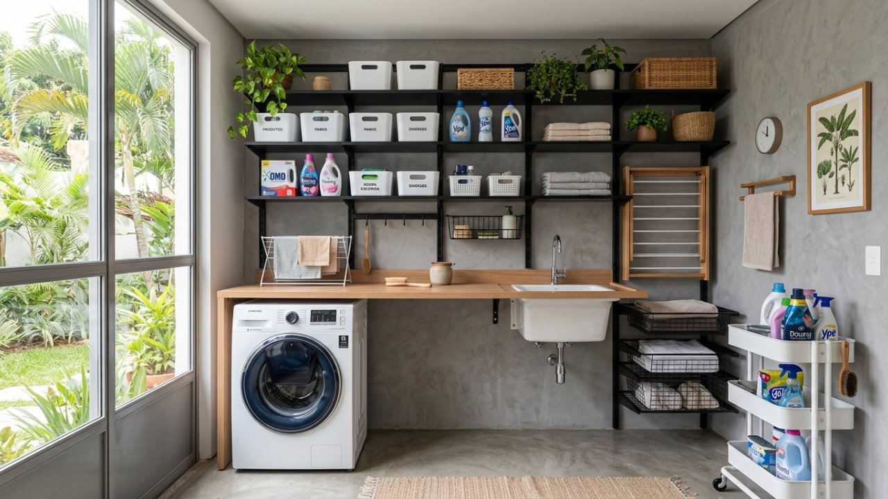 A lavanderia deixou de ser só “área de serviço” e virou, em 2026, um mini centro de apoio doméstico, onde se lava, seca, organiza e até guarda itens de uso diário. A grande virada está em soluções simples, rápidas e de baixo custo, que dispensam reformas pesadas e permitem transformar o espaço com praticidade, mantendo o ambiente moderno, bonito e fácil de limpar – mesmo sem usar azulejos ou tinta tradicional.