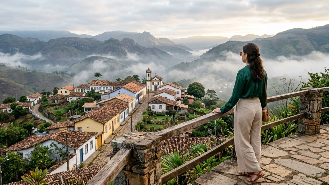 A neblina abraça as casinhas coloridas antes do café da manhã. A 1.300 metros de altitude e a apenas 17 km de Ouro Preto, Lavras Novas reúne 14 cachoeiras num raio de 6 km, ruas de pedra com portas e janelas tortas e uma história que começa no ciclo do ouro e sobrevive até hoje com cerca de 1.500 habitantes. O vilarejo só recebeu energia elétrica na década de 1970 e foi reconhecido como distrito apenas em 2005.