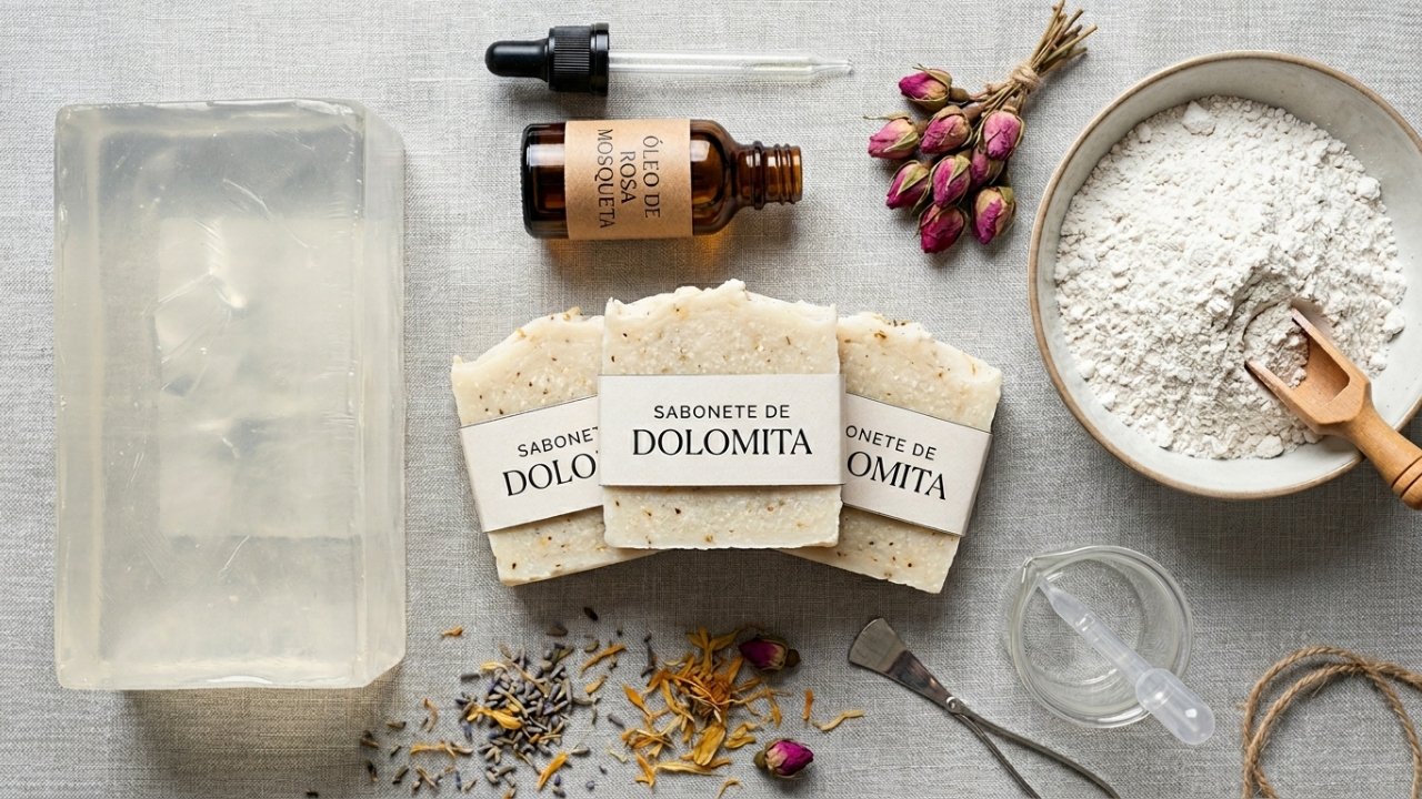 O óleo de rosa mosqueta é rico em ácidos graxos e compostos associados à regeneração cutânea, muito usado em produtos para cicatrizes e manchas. Já a dolomita fornece uma esfoliação leve, retirando células mortas e favorecendo mais luminosidade, desde que a frequência de uso seja controlada.
