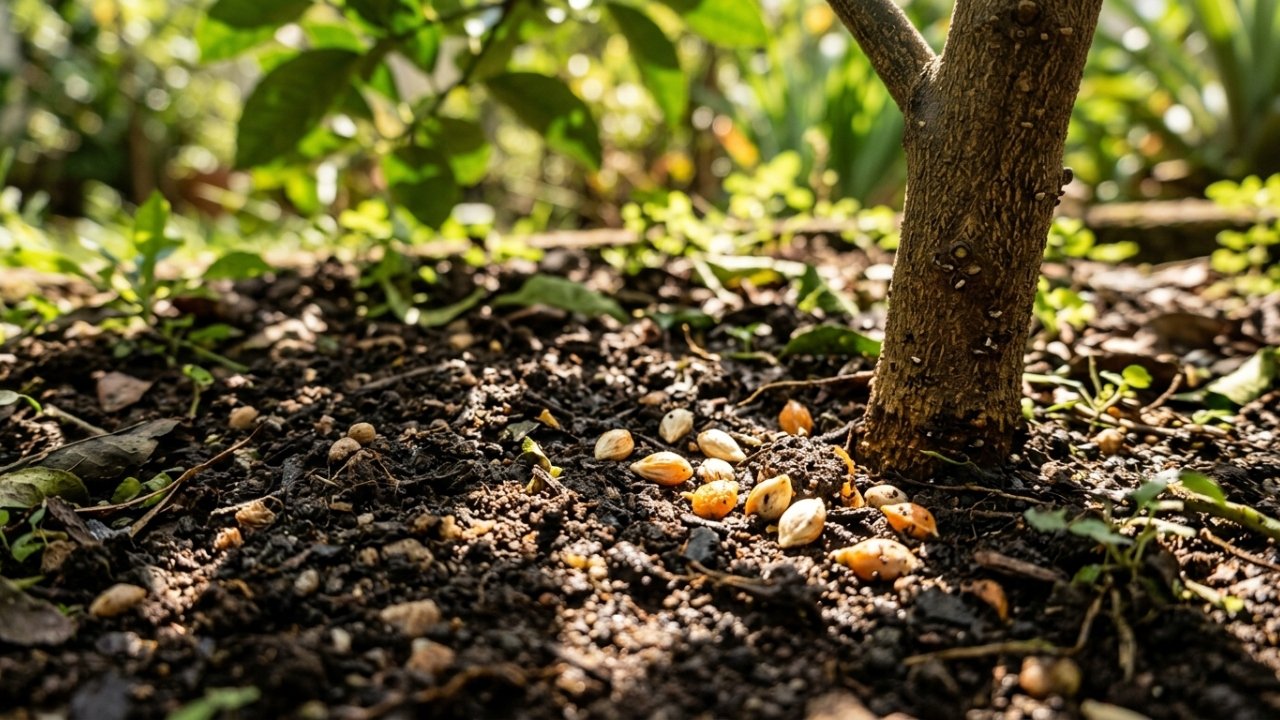 Esse tipo de resíduo orgânico também ajuda a criar um ambiente mais próximo ao de um pomar natural, com queda constante de folhas, frutos e sementes ao redor do tronco. Ainda assim, o impacto de algumas sementes é limitado e não se compara a uma adubação orgânica planejada com composto, esterco curtido ou fertilizantes específicos para cítricas.