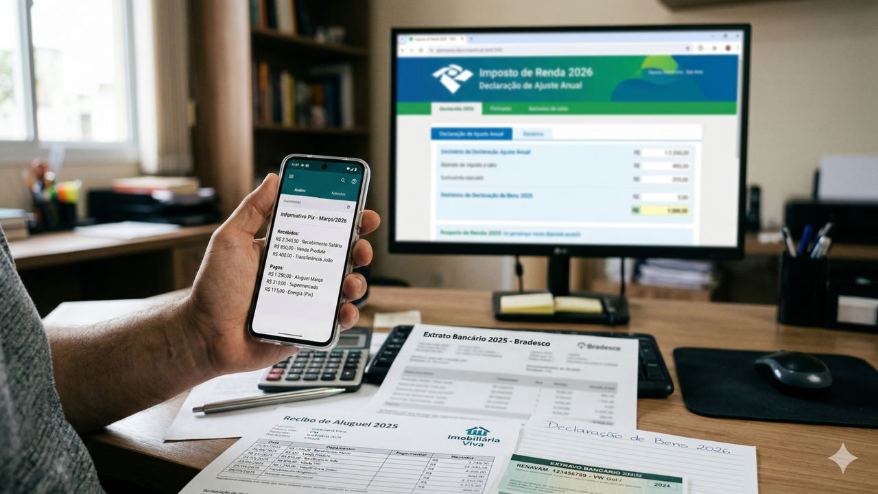 - Reunir documentos: informes de rendimentos, extratos com Pix, contratos de aluguel e recibos de serviços.