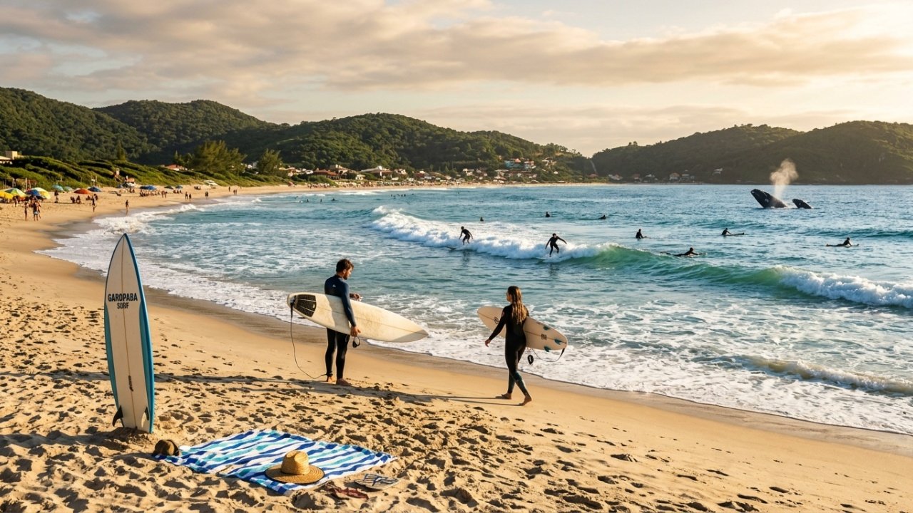 Garopaba tem cerca de 30 mil habitantes, praias que já receberam o circuito mundial e baleias que aparecem a nado da areia. Mas ainda preserva a Paróquia São Joaquim dos anos 1800, a vila de pescadores e o ritmo de quem não tem pressa. Não é à toa que surfistas que vieram passar um fim de semana acabam comprando terreno.