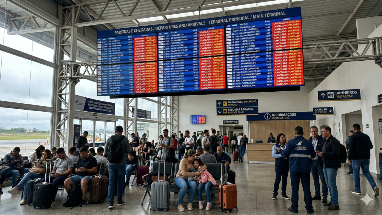 Alguns dos principais impactos registrados em aeroportos brasileiros foram organizados pelos setores de operação para mapear pontos críticos e orientar os passageiros sobre riscos de remarcação e atrasos: