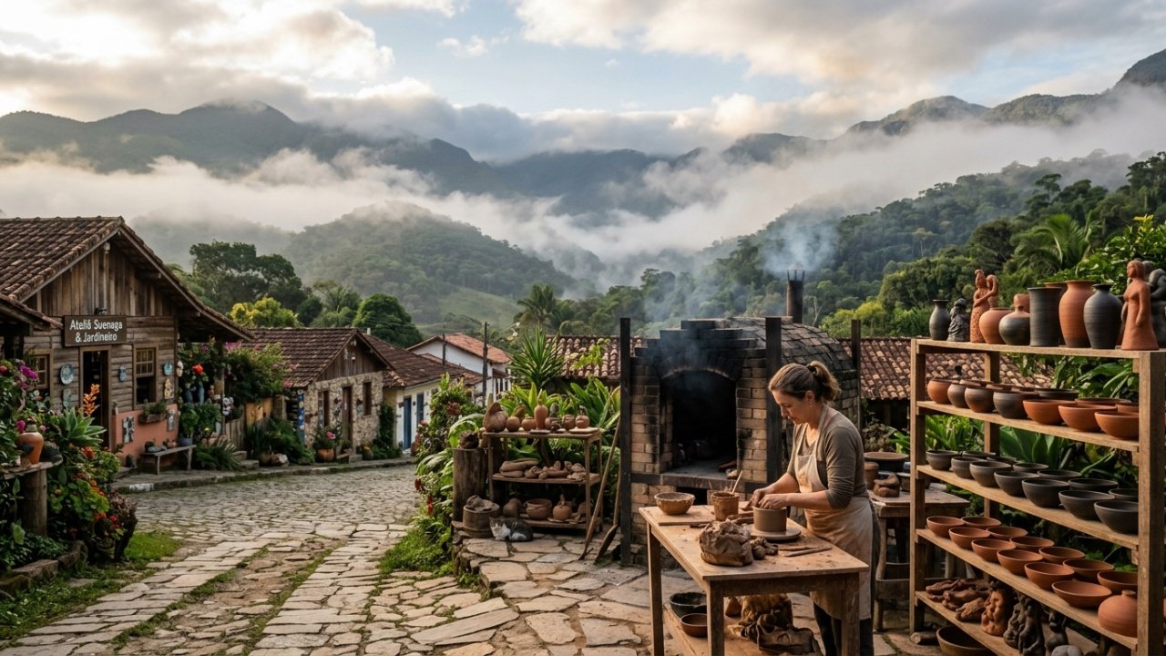 A estância climática da serra paulista tem algo raro: uma identidade construída por escolha. Os ceramistas que chegaram em 1975 não vinham para um lugar famoso. Criaram um.