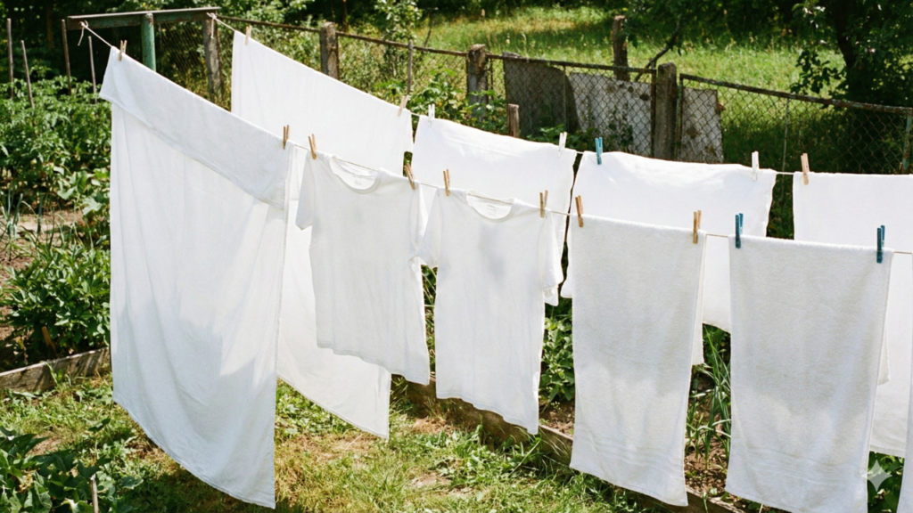 - Aproveitar a secagem ao sol: a luz solar ajuda no clareamento natural e na redução de micro-organismos, desde que o tecido suporte essa exposição.