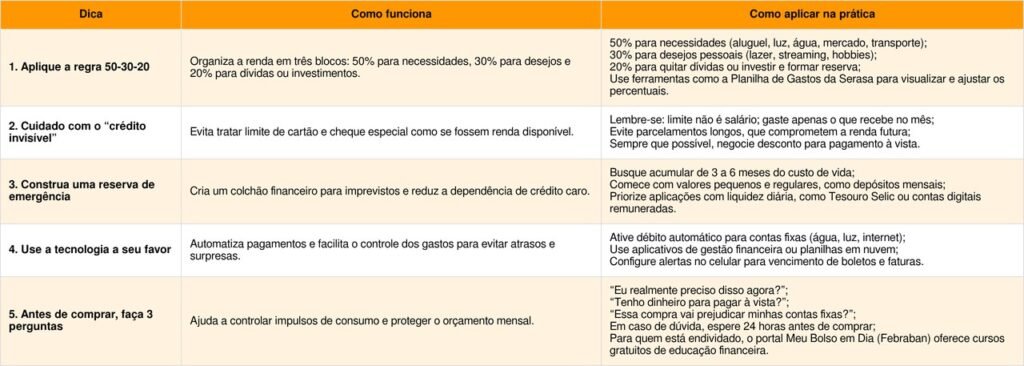 Mesmo sem negativação ativa, muitas instituições analisam o histórico interno de relacionamento, considerando atrasos graves, renegociações quebradas e acordos não cumpridos. Para reconstruir a reputação de crédito, é útil adotar práticas financeiras consistentes, como as estratégias abaixo.