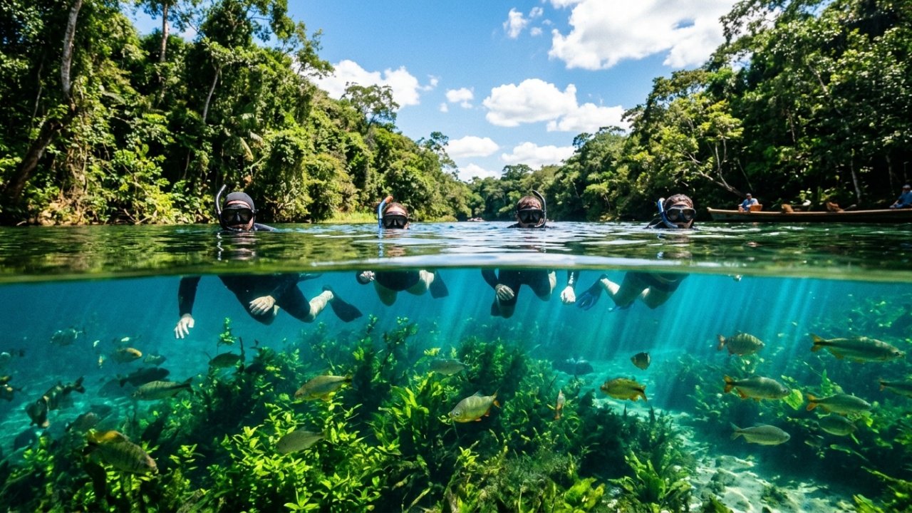 Bonito é um dos raros destinos brasileiros onde a fama internacional não afetou a qualidade do atrativo. O calcário da Serra da Bodoquena continua filtrando a água, os rios seguem cristalinos e o voucher único segue controlando a capacidade.