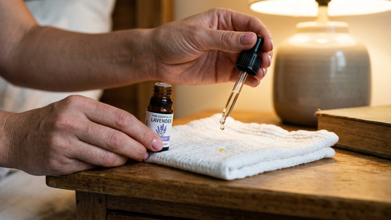 - Algumas gotas de óleo essencial: aplicar poucas gotas, de preferência diluídas, na fronha ou em um lenço de tecido próximo ao travesseiro, sem exagerar.