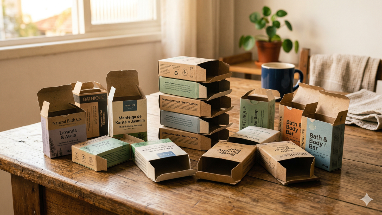 Reciclar caixas de sabonete não precisa ser um processo demorado ou complicado. As embalagens podem ser usadas inteiras, recortadas ou combinadas, desde que o papelão seja bem reforçado com cola e protegido com tinta e verniz.