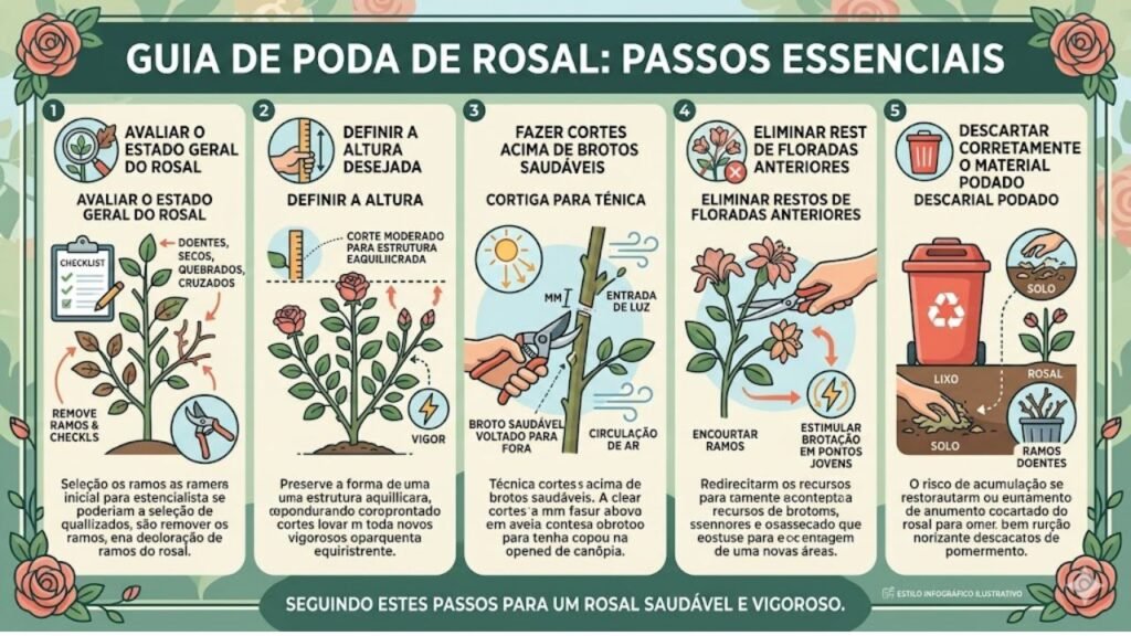 Entender o clima local, a idade da planta e o tipo de roseira ajuda a definir se é a hora certa de intervir, evitando podas exageradas e estresse desnecessário, principalmente em rosais mais jovens ou recém-plantados.