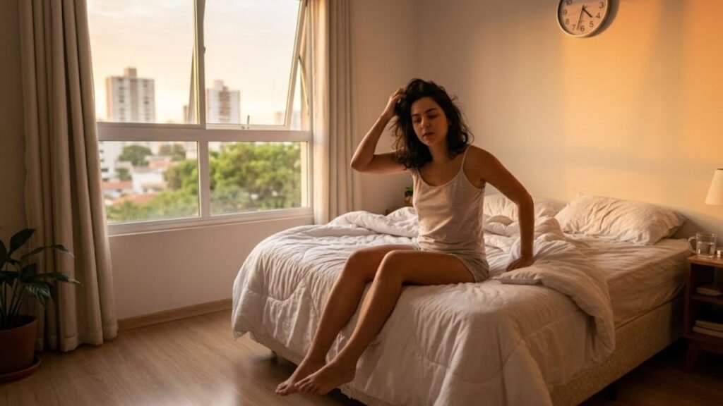 Uma estratégia simples é: acordar, abrir janelas e cortinas, deixar o ar circular e só arrumar a cama depois do café da manhã. Outra ideia é reduzir o excesso de itens sobre a cama — menos almofadas e cobertas extras — para tornar o processo rápido e sem estresse.