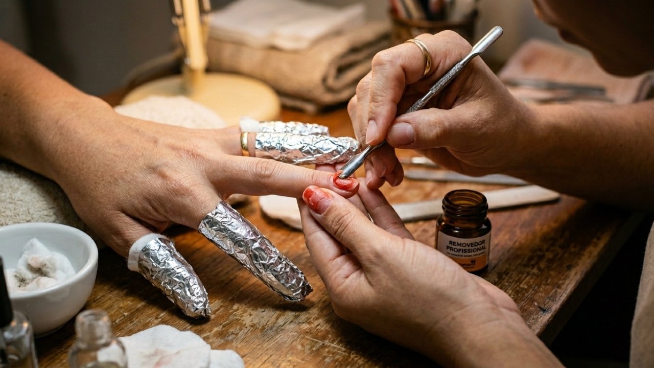 Em algumas situações, insistir em remover esmalte semipermanente em casa pode piorar o quadro, principalmente se as unhas já estiverem frágeis, quebradiças, manchadas ou doloridas. Se você notar sensibilidade ao toque, desfolhamento intenso ou alterações persistentes na cor, é hora de parar tudo e buscar ajuda especializada.