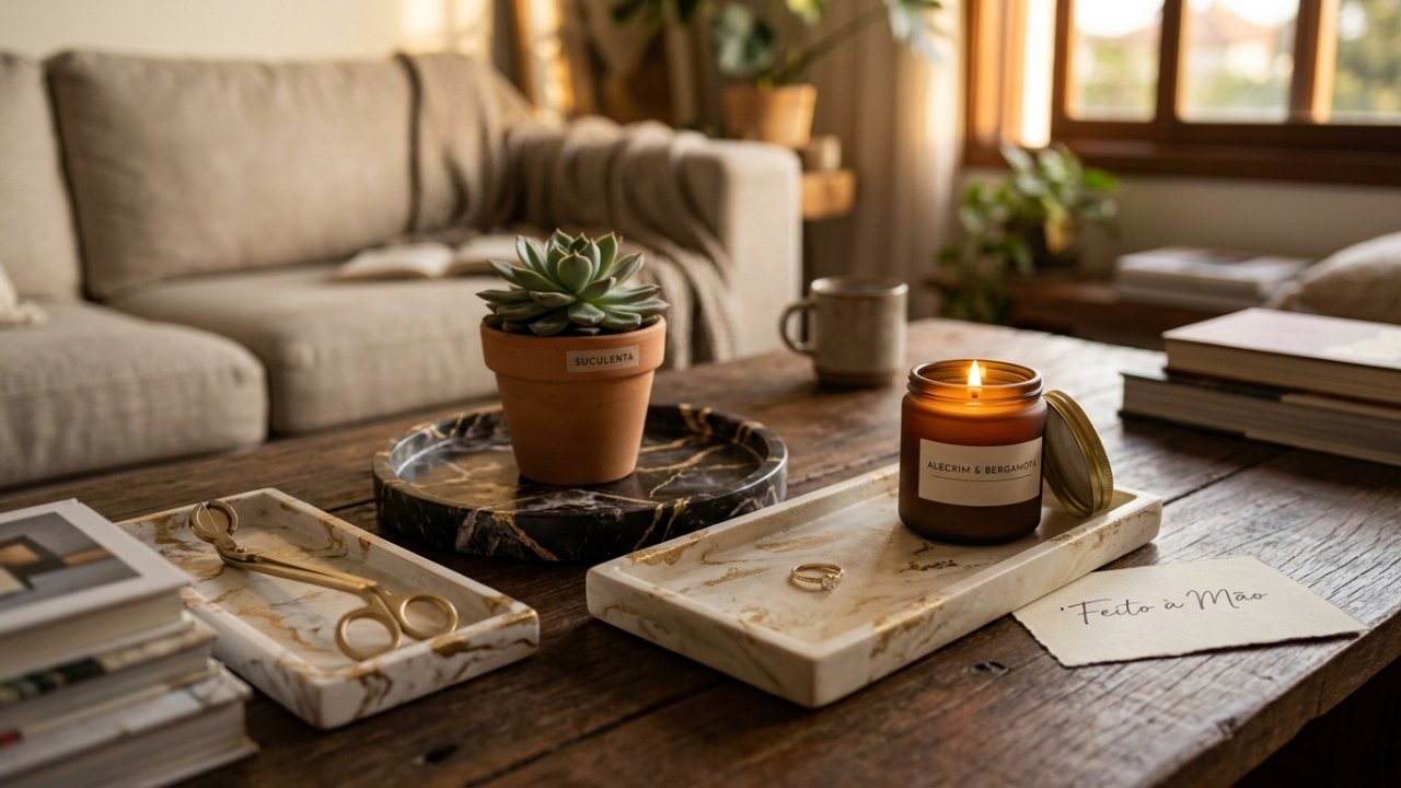 Quem busca um acabamento mais sofisticado nas bandejas de isopor pode apostar no efeito mármore, usando uma mistura simples de tinta acrílica e cola para madeira. A ideia é criar veios e manchas que lembram pedra natural, transformando uma bandeja comum em suporte decorativo para vasos, velas ou pequenos objetos.