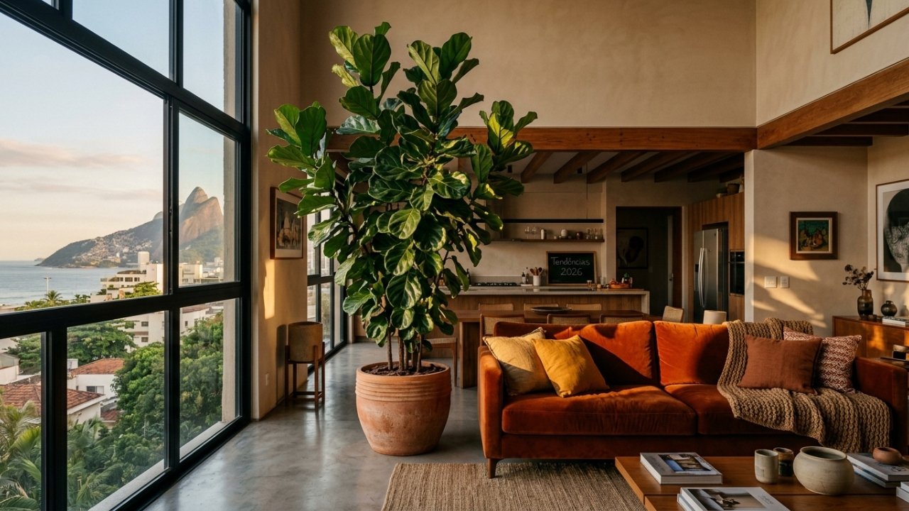 Plantas de grande porte protagonizam a decoração de interiores em 2026