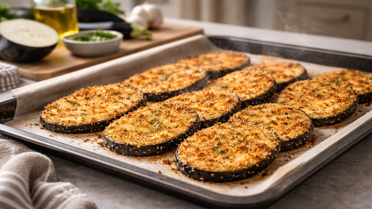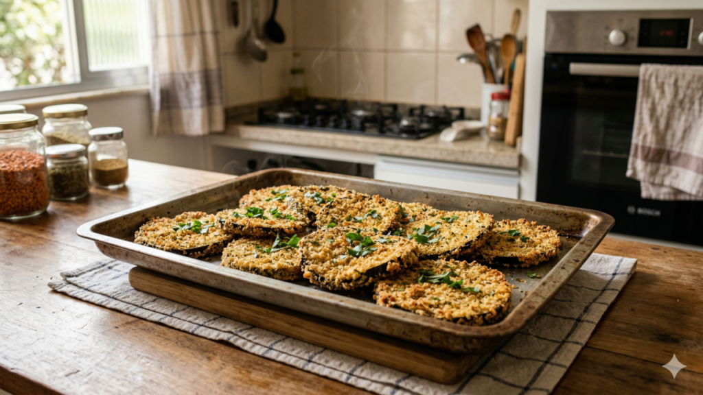 As milanesas de berinjela assadas vêm ganhando espaço nas cozinhas de quem busca uma alimentação mais leve, prática e saborosa, já que dispensam fritura em óleo e aproveitam o sabor natural do legume com um empanado crocante e muito versátil para o dia a dia.