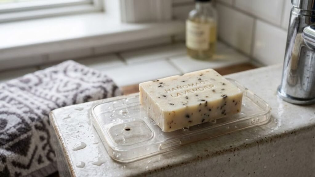- Uso no dia a dia: apoiar o sabonete em barra dentro da antiga capinha, usando as bordas para impedir que escorregue, e alternar o lado do sabonete para secar melhor e durar mais tempo, reduzindo o desperdício de produto.