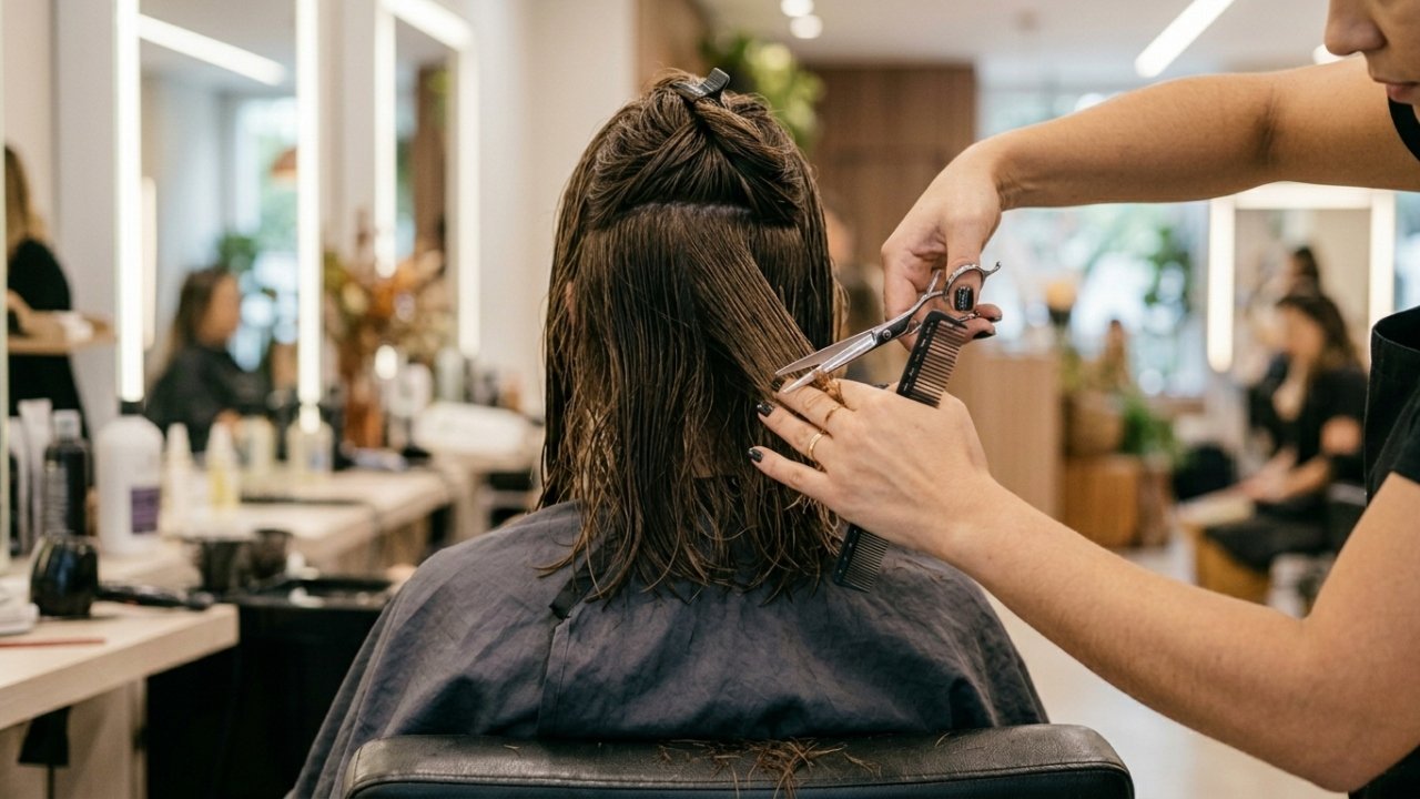 Manter a franja na altura das maçãs do rosto permite que ela seja incorporada ao restante do cabelo repicado sem criar divisões bruscas. Para um acabamento profissional, vale investir em um protetor térmico de marcas como Wella antes de usar o secador, garantindo que o caimento lateral permaneça impecável durante todo o dia.