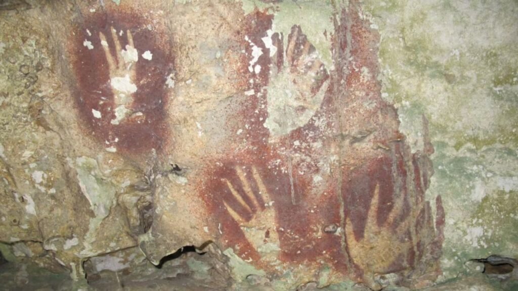 Imagine uma pessoa há quase 68 mil anos entrando em uma caverna escura, encostando a mão na parede fria de rocha e soprando pigmento ao redor dos dedos. O que para ela talvez fosse um gesto simbólico ou ritual complexo, hoje é uma das pistas mais antigas que temos sobre a capacidade humana de criar arte e deixar marcas no mundo.