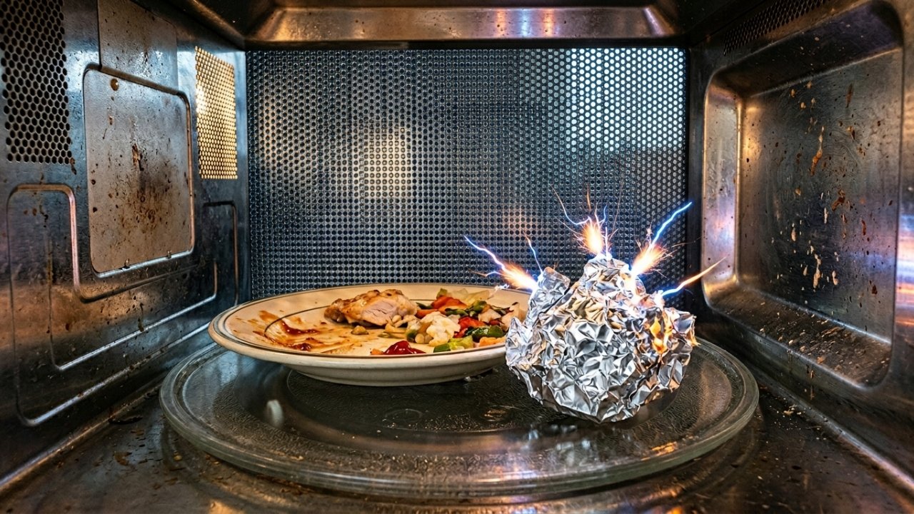No cotidiano, o alumínio aparece amassado, dobrado como tampa improvisada ou em pequenas bandejas, criando irregularidades e pontas minúsculas que concentram o campo elétrico. Situação semelhante ocorre com palha de aço, rótulos metalizados e louças com detalhes metálicos, que podem aquecer demais, produzir faíscas e danificar o interior do aparelho de forma visível ou silenciosa.