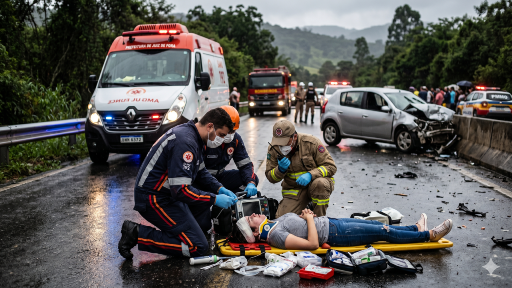 Ela relata que, ao ser arremessada para fora do veículo, percebeu claramente o risco iminente de morte e formulou mentalmente pedidos de ajuda, sentindo a juventude interrompida. Em seguida, diz ter passado a observar tudo de “cima”, vendo os socorristas examinarem seu corpo, incluindo o momento em que a cobrem com uma manta, como se o óbito estivesse confirmado.