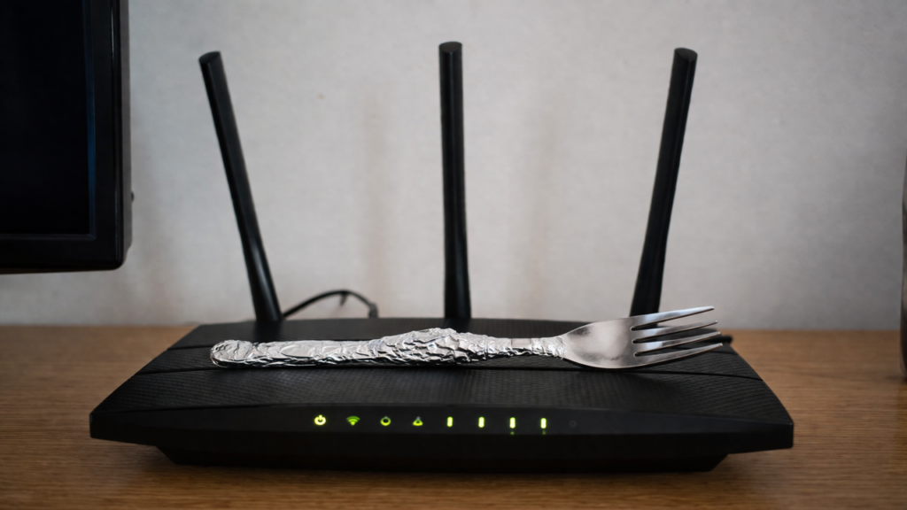 O famoso truque consiste em pegar um garfo comum, envolvê-lo completamente com papel alumínio e apoiá-lo na posição vertical sobre o roteador. Quem divulga essa prática afirma que o metal funcionaria como uma antena improvisada, ajudando a espalhar o sinal pela casa.