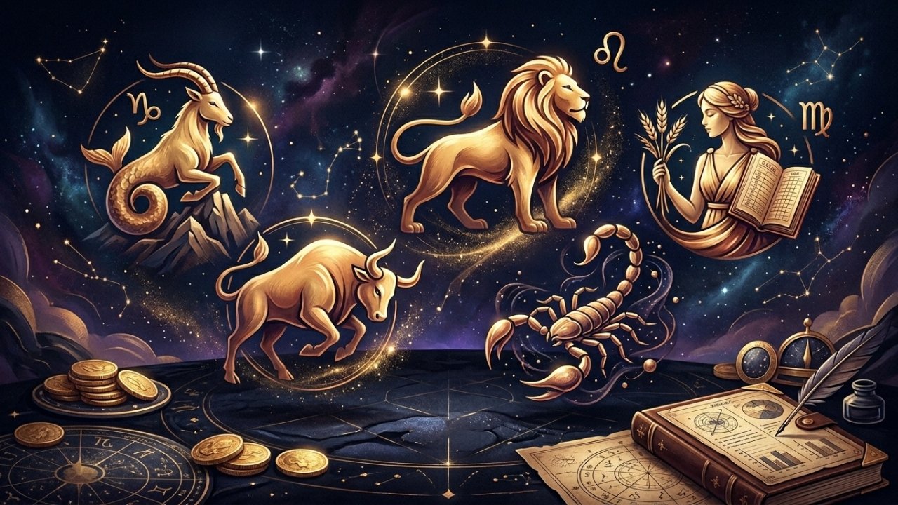 Entre as interpretações mais recorrentes, cinco signos se destacam como os que mais concentram traços ligados à prosperidade financeira: Capricórnio, Escorpião, Leão, Virgem e Touro.