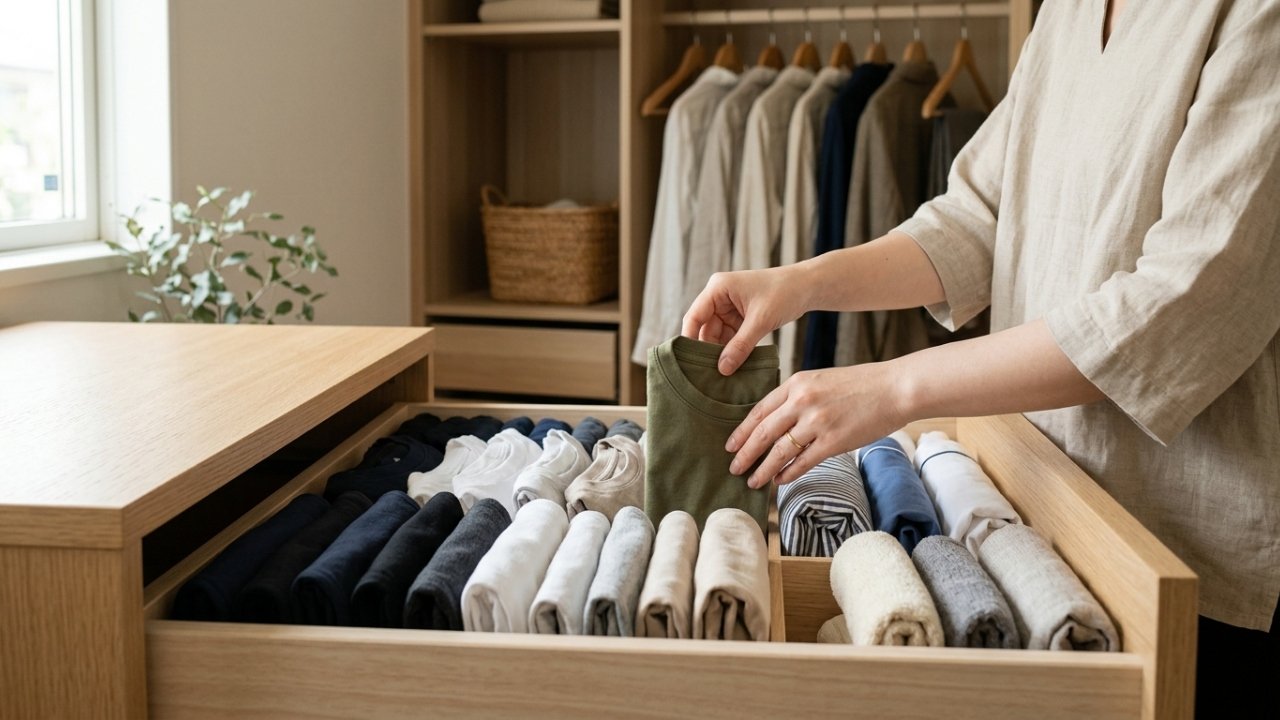 Para aplicar o método japonês para dobrar roupas em casa, não é necessário investir em móveis novos nem em acessórios caros. A principal mudança está na maneira de manipular cada peça, adaptando o processo ao tipo de tecido e ao tamanho da roupa.