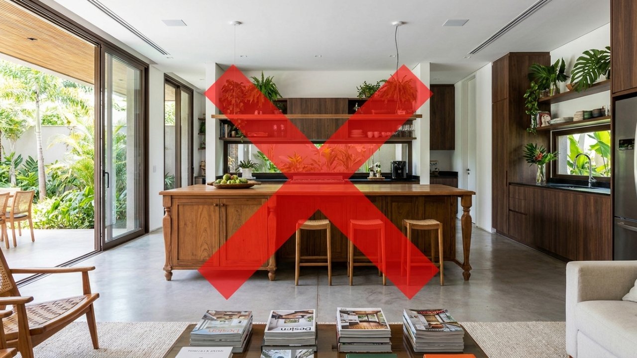 A cozinha passou a concentrar tarefas de estudo, reuniões online, convívio rápido e atividades com crianças. Nesse cenário, uma grande ilha pode tornar-se barreira física, gerar engarrafamentos diários e servir mais como ponto de acumulação de objetos do que como apoio funcional para cozinhar.