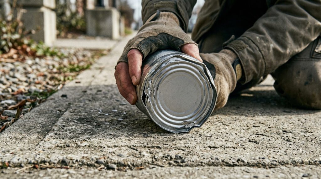 Fora de casa, sem faca nem colher à vista, o método da pedra ou superfície áspera é a saída. O processo consiste em esfregar a tampa da lata repetidamente contra uma pedra pontiaguda ou uma superfície de concreto até desgastar o alumínio e soltar o lacre. É trabalhoso e exige força considerável, mas funciona para latas de alumínio com tampa mais fina.