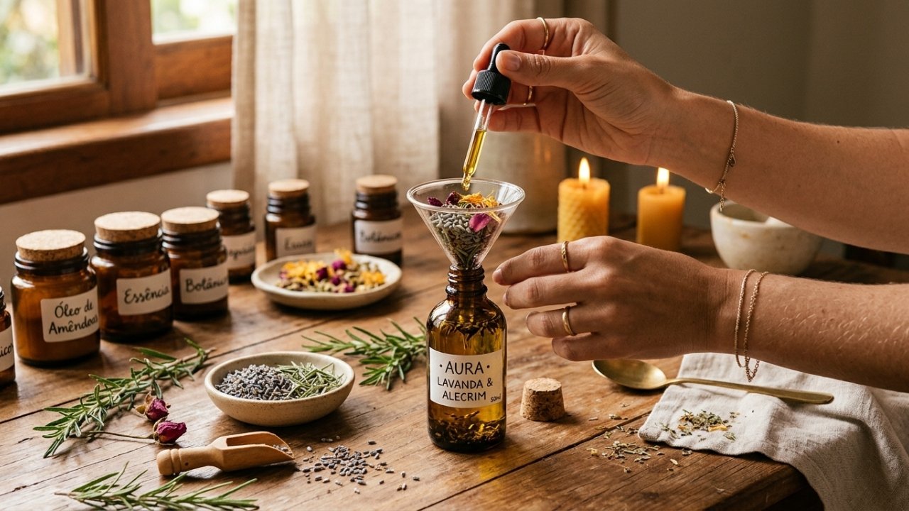 Estava cansada de gastar fortunas com marcas importadas quando aprendi a criar meu próprio óleo corporal perfumado usando ingredientes que já tinha na despensa. Você já imaginou ter aquele aroma relaxante de spa na sua derme sem precisar sair de casa ou usar componentes químicos pesados?