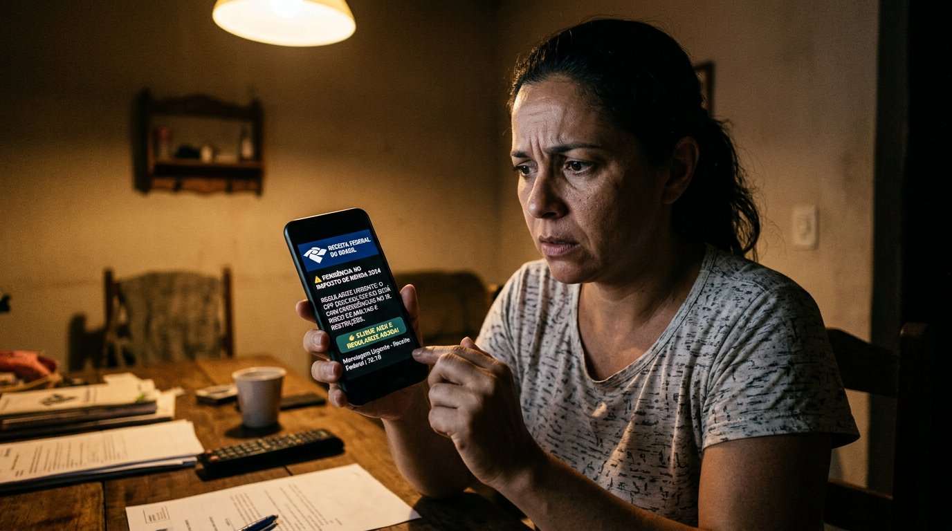 O ataque começa com uma mensagem alarmante no celular da vítima. Segundo o comunicado oficial da Receita Federal, os criminosos se passam por servidores do órgão e informam que há pendências graves vinculadas ao CPF do contribuinte, com ameaças de bloqueio de conta bancária, suspensão do Pix e até inclusão em cadastros de proteção ao crédito como Serasa e SPC Brasil.