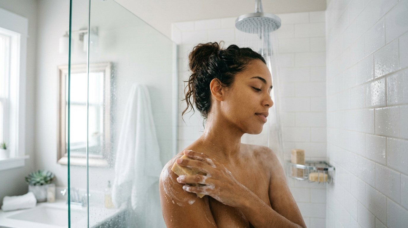 A água quente é o principal agressor subestimado do banho. Ela dissolve os lipídios da camada superficial da pele, remove parte do microbioma benéfico e abre os poros, favorecendo a perda de umidade. A recomendação unânime dos especialistas é usar água morna, em torno de 37°C. No inverno, a tentação de aumentar a temperatura é maior, mas os cuidados precisam ser redobrados justamente nessa estação, quando a pele já tende a ficar mais seca.