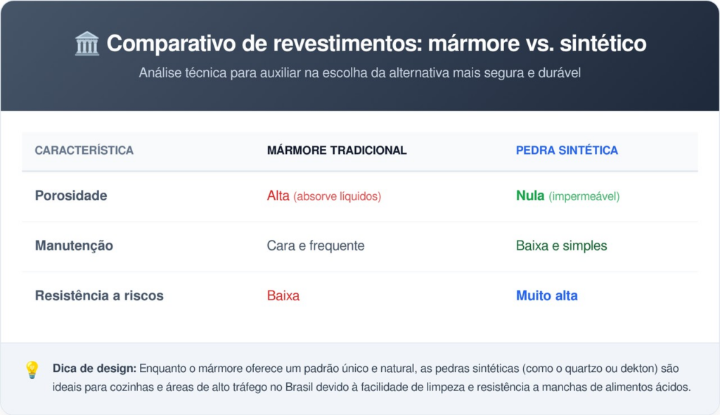 Na ponta do lápis, o investimento inicial em chapas industrializadas costuma ser expressivamente mais amigável ao bolso do consumidor comum. O custo elevado de extração e polimento constante de rochas puras encarece o produto final que chega às grandes marmorarias de todo o país.