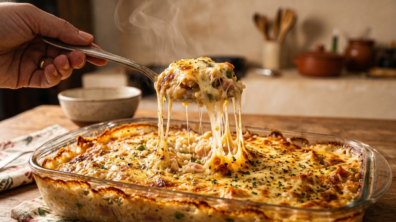 O segredo para transformar o arroz de ontem em um prato cremoso de forno rapidinho