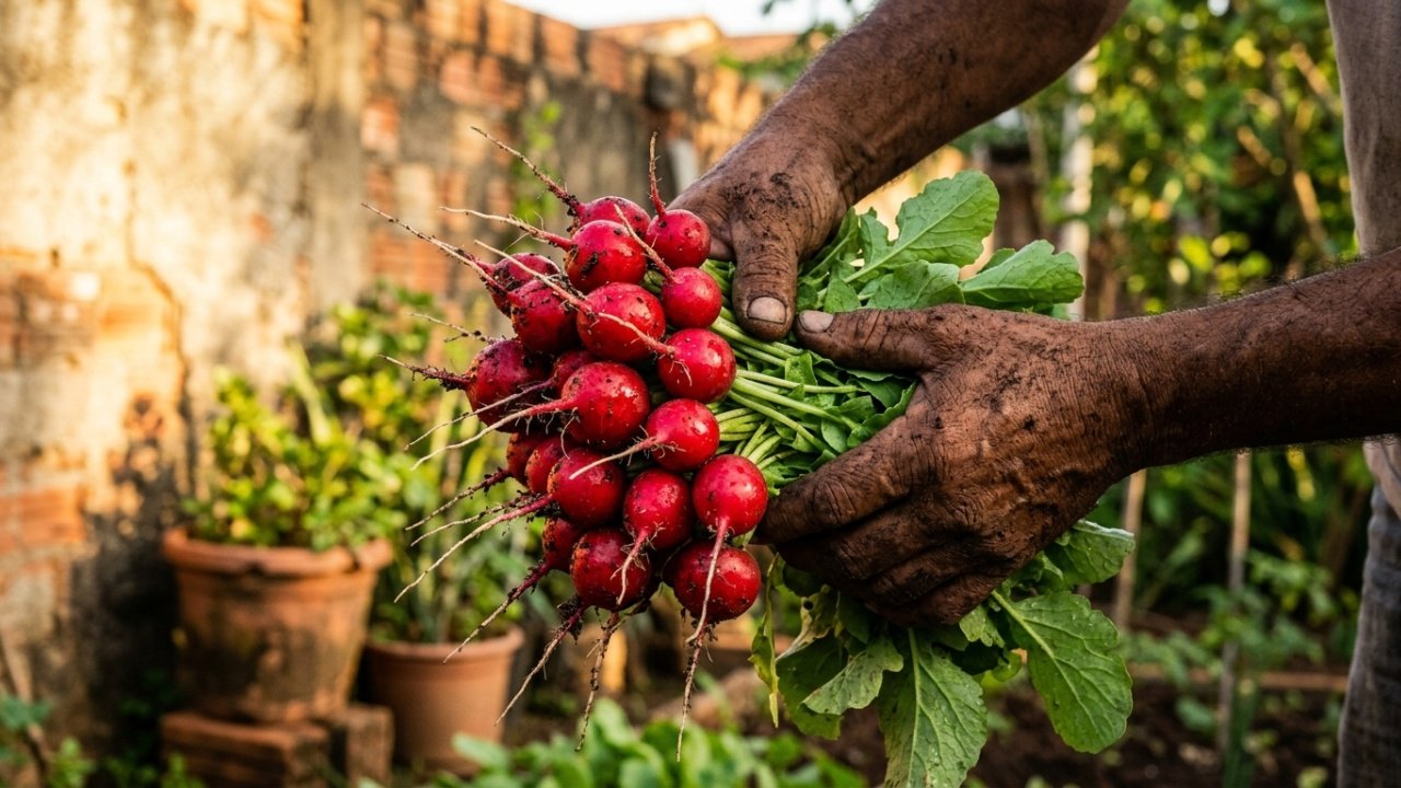 Para garantir uma colheita ainda este ano, o segredo é focar em espécies de ciclo curto. O rabanete é o grande campeão de velocidade, ficando pronto para o consumo em apenas 25 a 30 dias após a semeadura em solo bem preparado.