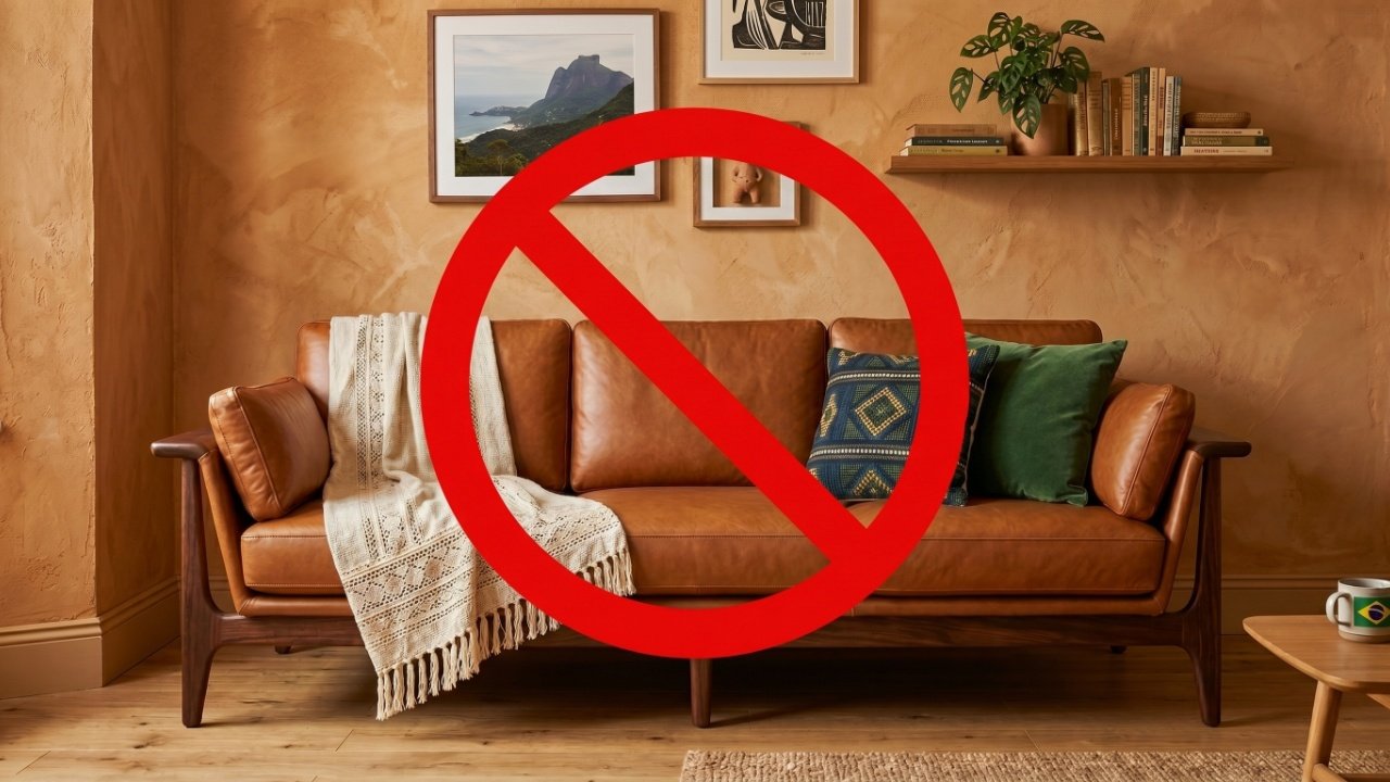 Empurrar o sofá contra a parede na tentativa de liberar o centro da sala é um dos equívocos mais comuns no design de interiores. Essa prática cria um “vazio” central que desvaloriza a coesão visual e faz o espaço parecer uma sala de espera.