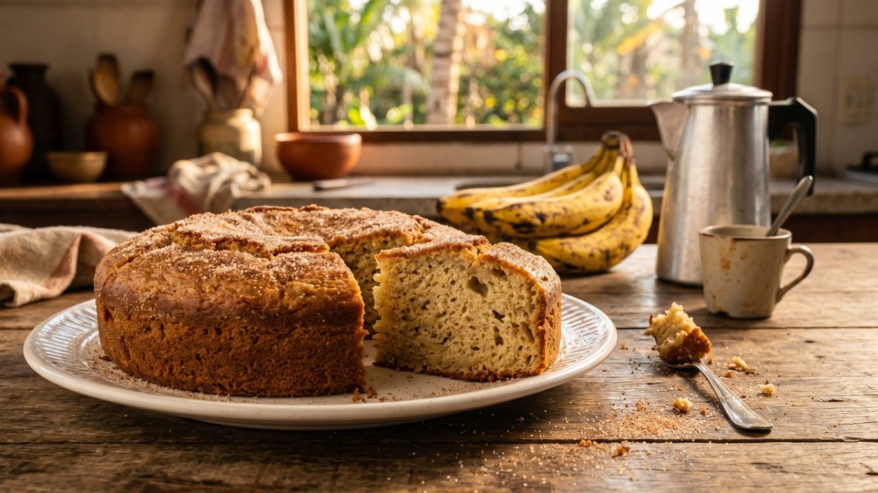 O truque do trigo com amido de milho que deixa o bolo de banana perfeito em 40 minutos